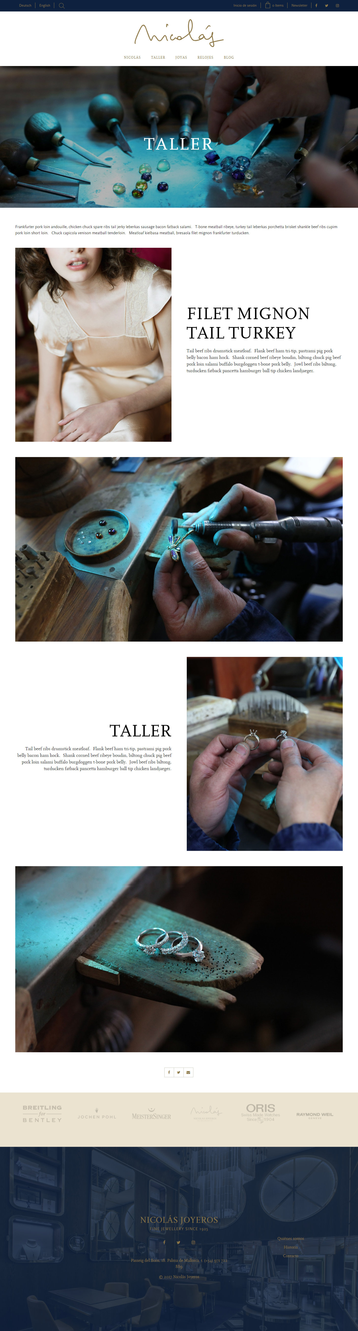 Nicolás Joyeros is a jewelry and watchmaker from Mallorca specialized in the production of own jewelry and redesign of antiques. Created 95 years ago by the Pomar family (family of jeweler artisans), today it revives, through its third generation, the value and techniques of traditional jewelry that evoke a contemporary experience of luxury. Since its inception, Nicolás Joyeros has opted for the production of custom-made jewelery: pre-à-porter jewelery and exclusive jewelery adapted to each client, always making him a participant in the entire process of developing the piece.
